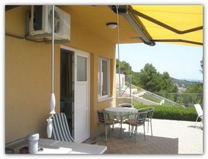 4 Personen, Erdgeschoss, Großraum-Studio Appartement, 42 m² mit einer großen Terrasse ca. 30 m² beitseitiger Meerblick.