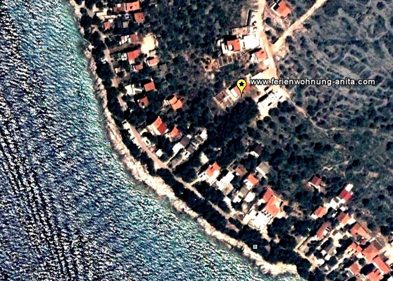 Einkaufszentrum: 1 Km (Post, Bank, Apotheke, Cafe usw.) N43° 49,304 E15° 35,183