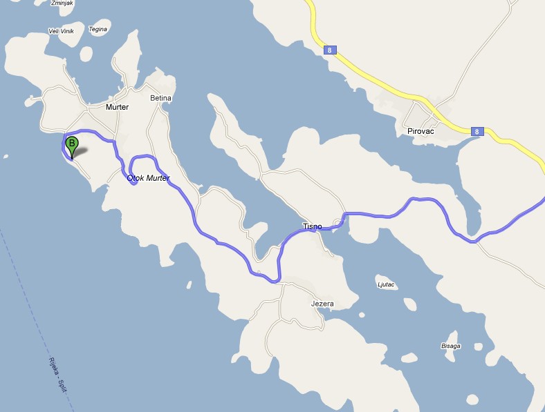 Ortszentrum Murter: 1,5 Km (Info, Hafen, Restaurants, usw.) N43° 49,357 E15° 35,479
